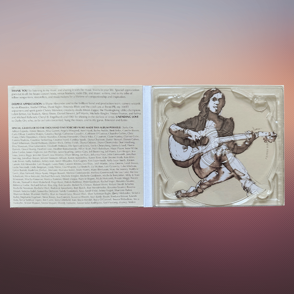 A Thousand Tiny Torches in CD format, packaged in a 4-panel digipak case made with recycled soda-bottle tray,