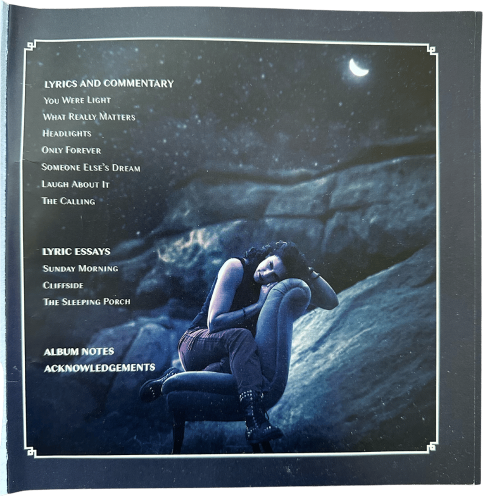 Here you get it all – A Thousand Tiny Torches CD and the gorgeous soft-cover companion book, a 8.5"-square book with 32 full color pages of lyrics, essays, art, and album notes, plus three essays from the vault that were previously published in literary journals but never before bound together.